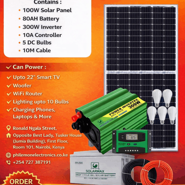 Solarmax 200W Solar Full Kit is a complete solar energy solution designed to provide stable and efficient power for homes, shops, and outdoor applications. This all-in-one system includes high-quality components to ensure reliable performance and long-lasting durability.